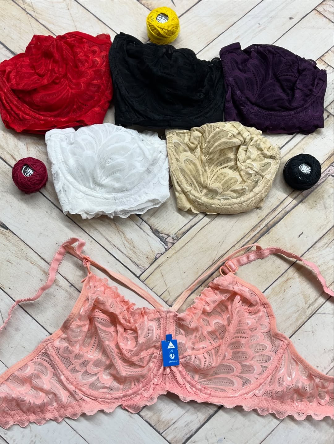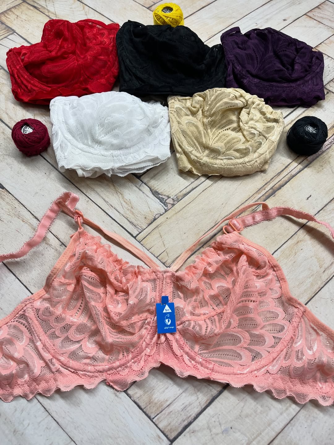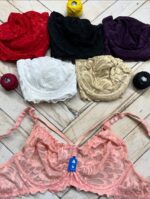 سوتین بدون فنر دانتل گل سرخی کد ۶۲۸ مارک معتبر لعیا (جین ۱۲تایی)