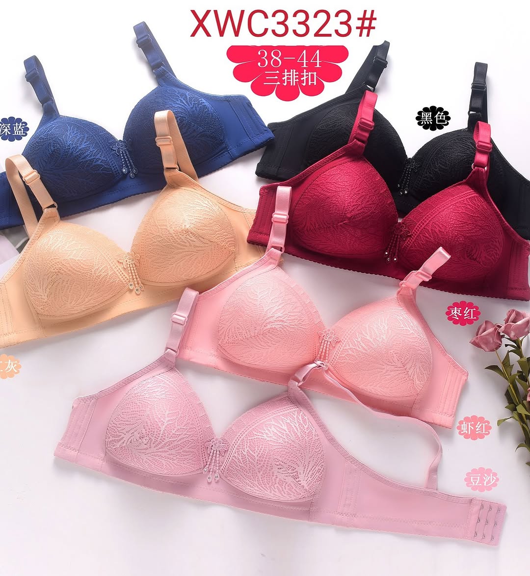 سوتین وارداتی اسفنجی کاسه دانتل بدون فنر کد ۳۳۲۳ (جین ۱۲تایی)