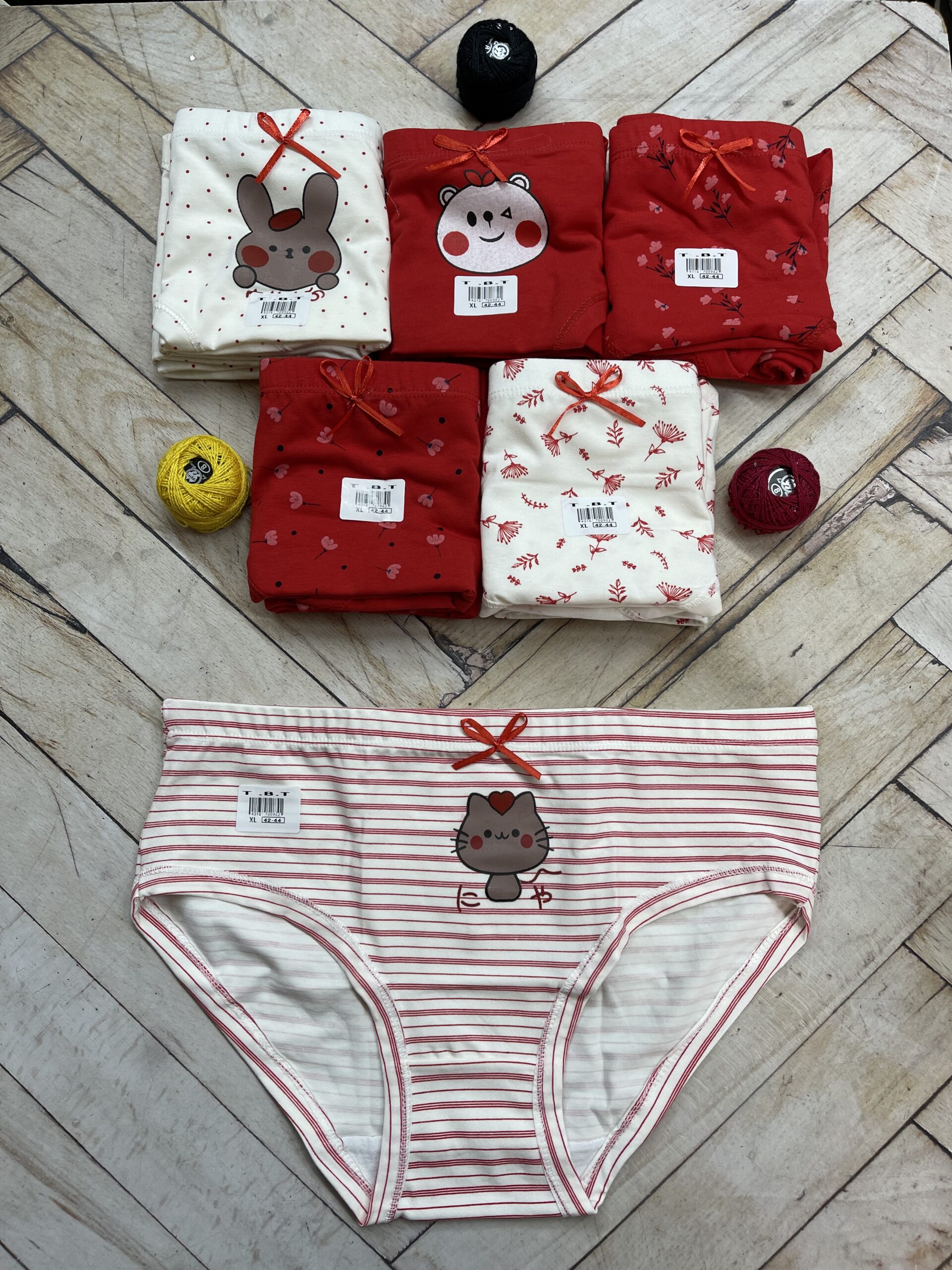 شورت نخ پنبه عروسکی تم زرشکی پیشی مارک سون دی ( جین ۱۲ تایی )