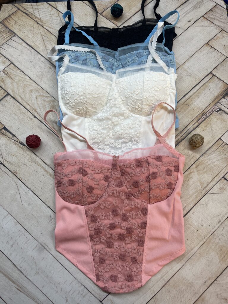 نیم تنه کراپ وارداتی پایین مثلثی گل گیپوری ( جین ۱۲ تایی )