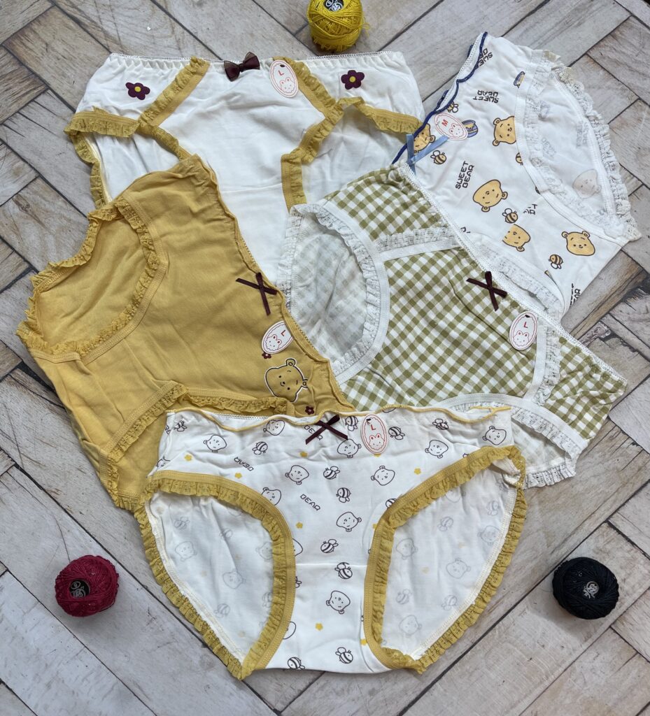 شورت عروسکی نخی وارداتی پو زرد مارک لارج ( جین 12 تایی )