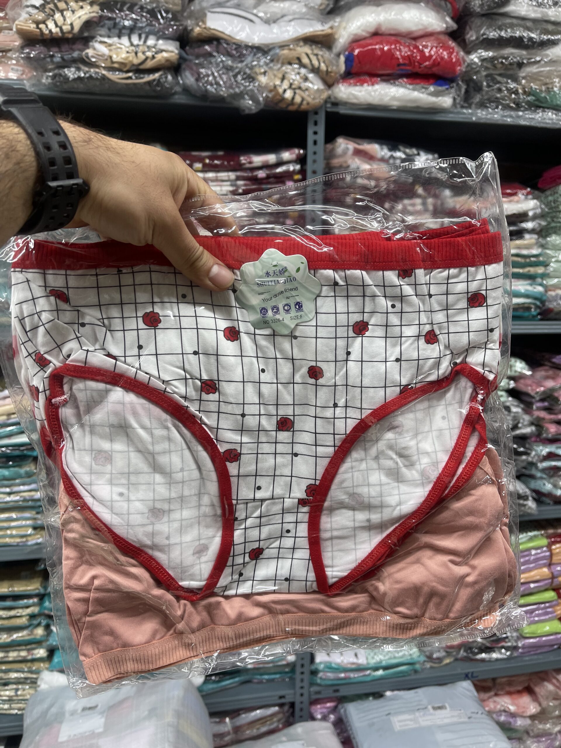 شورت نخی زنانه جلوچاپ لوزی ریز مارک تیشین یا نهال سابق ( بسته ۱۲ تایی )